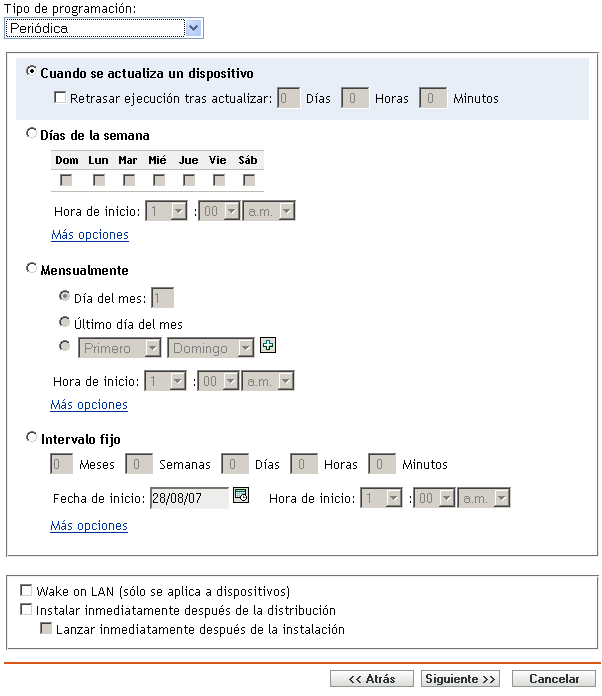 NOTA:en las siguientes secciones se describen todas las opciones de programación periódica. Según el evento o la acción que esté programando, puede que algunas opciones no estén disponibles.