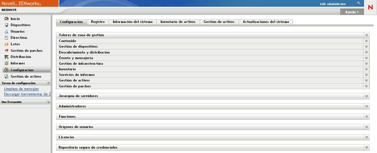 En el Centro de control de ZENworks, haga clic en la pestaña