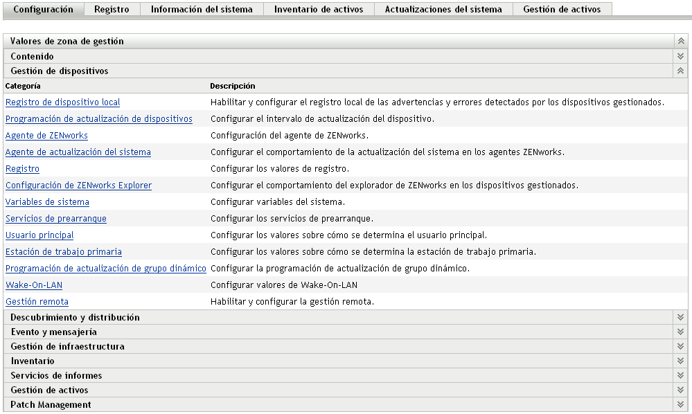 En el Centro de control de ZENworks, haga clic en la pestaña