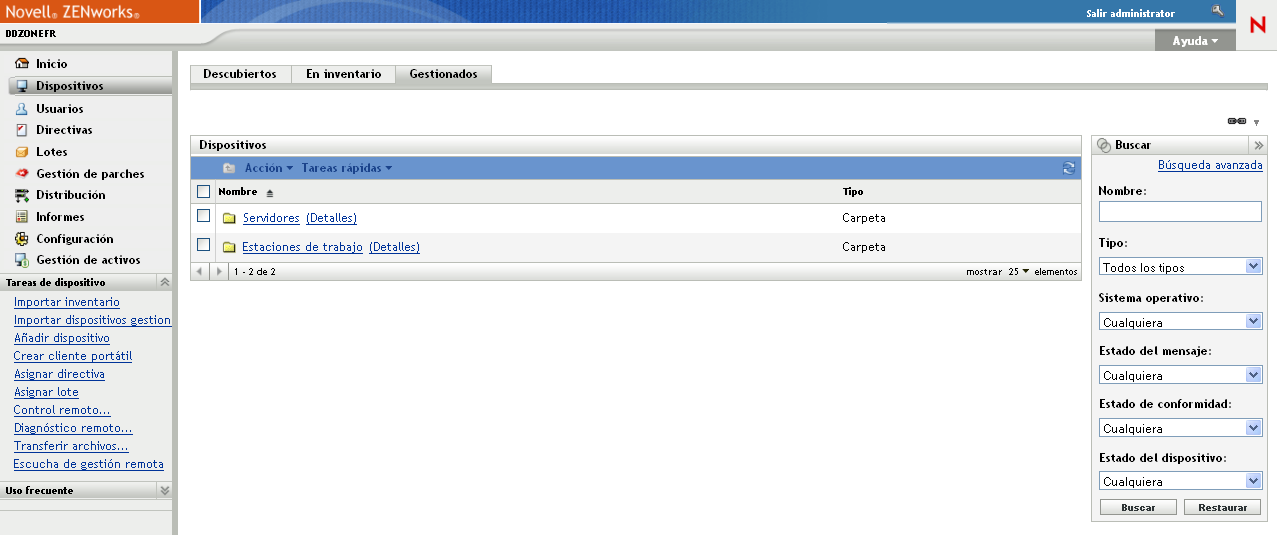 En el Centro de control de ZENworks, haga clic en la pestaña