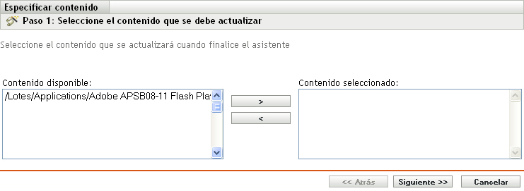 Haga clic en para lanzar el asistente Seleccione el contenido que se debe actualizar.