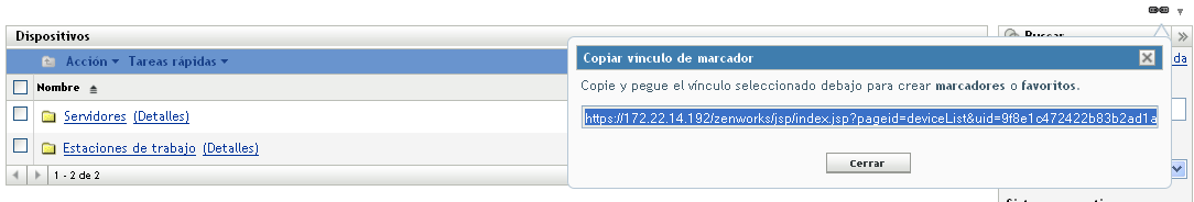 En el Centro de control de ZENworks, diríjase a una ubicación en la que desee crear un marcador.