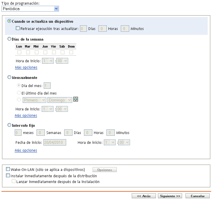 NOTA:en las siguientes secciones se describen todas las opciones de programación periódica. Según el evento o la acción que esté programando, puede que algunas opciones no estén disponibles.