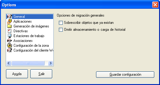 Figura B-1 Opciones de migración globales