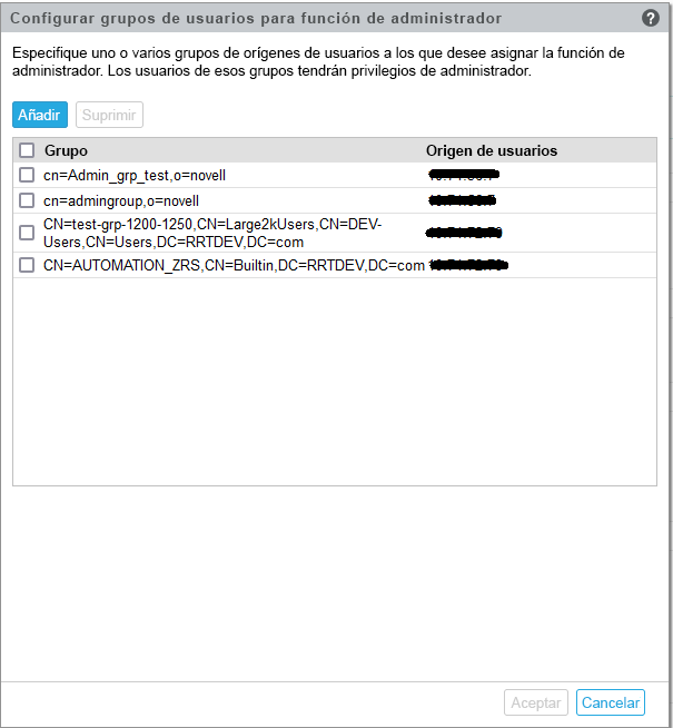 Para eDirectory: todos los subgrupos tendrán privilegios de administrador.