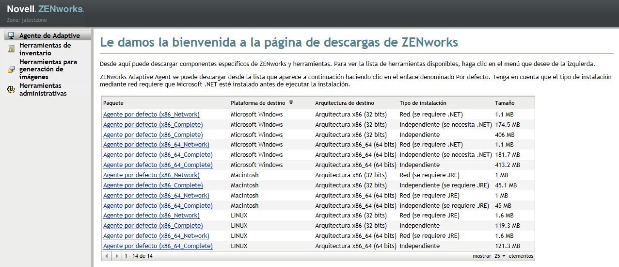 Independiente (se requiere JRE): este paquete requiere que Java 1.6 esté instalado en el dispositivo antes de la instalación del paquete de distribución. Sin embargo, el acceso al servidor ZENworks no es necesario para instalar el agente.