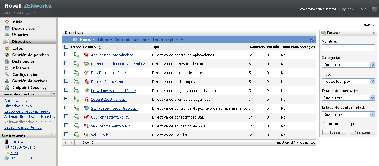 Después de crear una directiva, debe aplicarla a los dispositivos, asignándola a dispositivos o a usuarios del dispositivo.