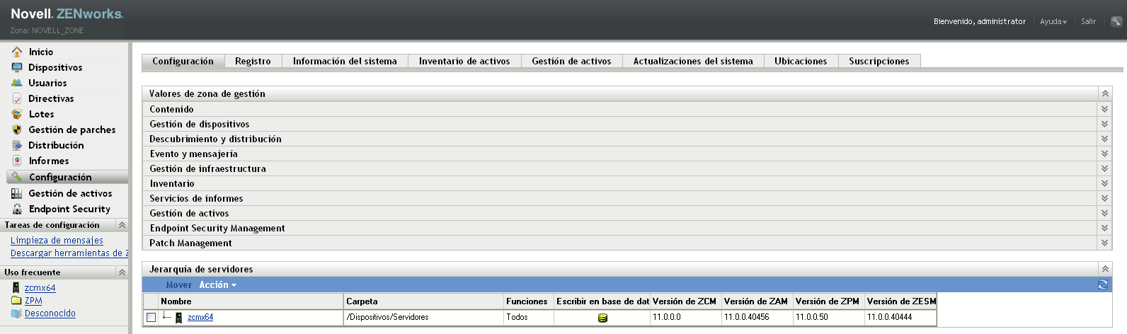 En el Centro de control de ZENworks, haga clic en para mostrar la página Configuración.