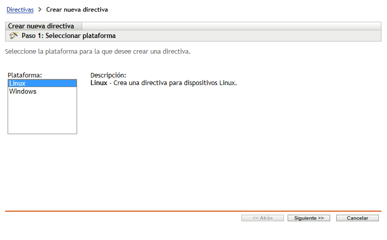 En el panel Directivas, haga clic en > para lanzar el asistente Crear nueva directiva.
