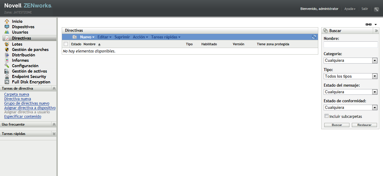 En el Centro de control de ZENworks, haga clic en para mostrar la página Directivas.