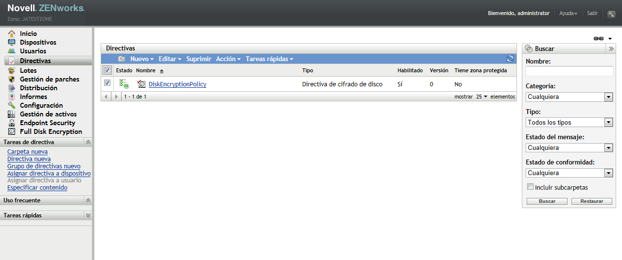 Después de crear una directiva de cifrado de disco, debe asignarla a los dispositivos.