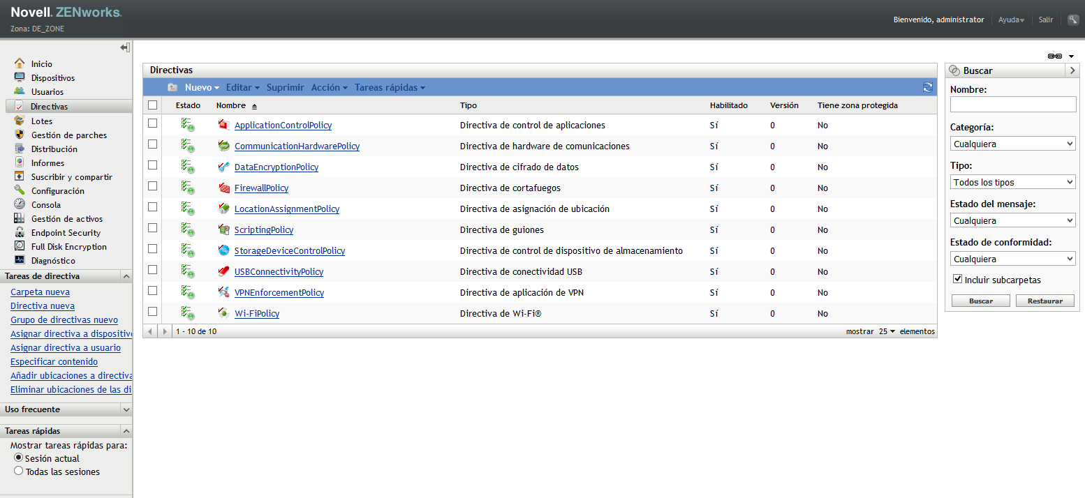 Después de crear una directiva, debe aplicarla a los dispositivos, asignándola a dispositivos o a usuarios del dispositivo.