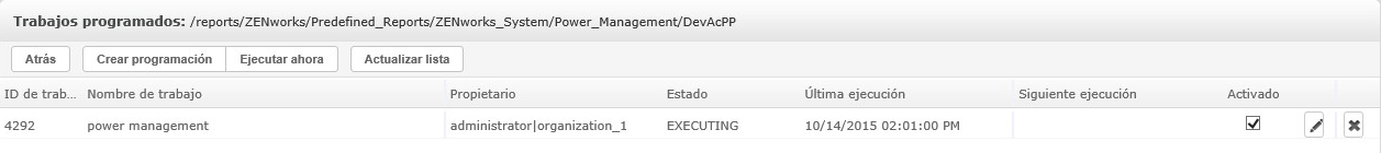 Puede realizar las siguientes tareas desde el panel Scheduled Jobs (Tareas programadas):