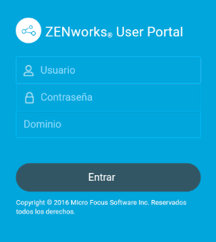 Se muestra la pantalla de entrada a la sesión de ZENworks User Portal. ZENworks User Portal se usa para inscribir el dispositivo.