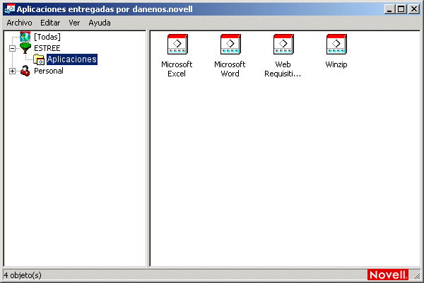 Árboles de eDirectory: cada árbol incluye las aplicaciones asociadas al usuario o a la estación de trabajo. La Ventana de aplicación sólo muestra los árboles para los que el usuario y la estación de trabajo se han autenticado.