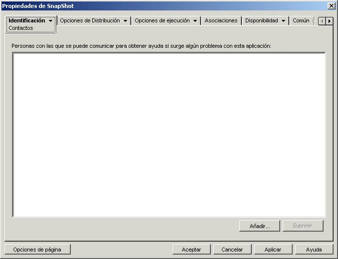Figura 48-5 Objeto Aplicación > pestaña Identificación > página Contactos