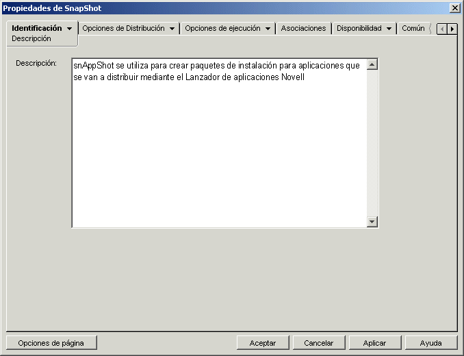 Figura 48-3 Objeto Aplicación > pestaña Identificación > página Descripción