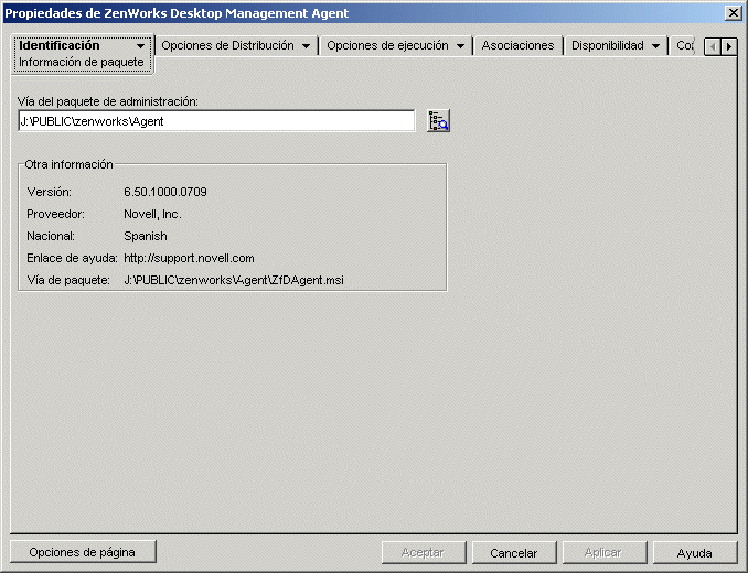 La página de propiedades Información de paquete sólo está disponible en los objetos Aplicación creados para aplicaciones MSI y no en objetos Aplicación creados para aplicaciones simples, aplicaciones AOT/AXT, aplicaciones Web y aplicaciones de servidor Terminal Server.