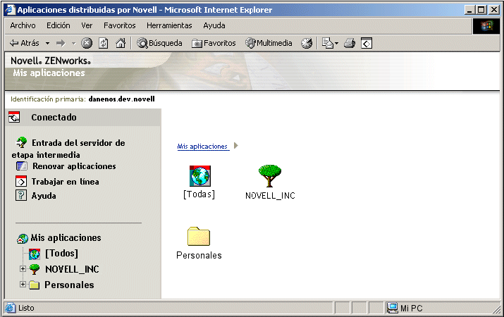 Carpeta Personal: ofrece una ubicación en la que el usuario puede crear carpetas personales para organizar las aplicaciones. Es una función controlada por el administrador. Por defecto, está inhabilitada, lo que significa que la carpeta no aparece. Para obtener información acerca de cómo habilitar las carpetas personales, consulte la Sección 21.3, Configuración de ajustes de Usuario.