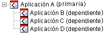 La aplicación principal es aquélla para la que se establecen dependencias. Las aplicaciones que se definen como dependencias se denominan aplicaciones dependientes. En las siguientes ilustraciones se muestra esta relación.