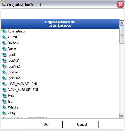 Seleccione los usuarios o grupos pertinentes de la lista. Puede utilizar las teclas Ctrl y Mayús para seleccionar varios usuarios.
