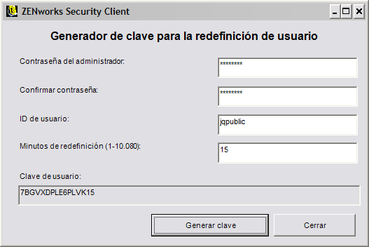 Esta clave la puede leer el usuario final durante una llamada al servicio de ayuda técnica, o se puede copiar y pegar a un correo electrónico. A continuación el usuario introduce la clave en la ventana de gestión de ZENworks Security Client (consulte la Guía del usuario de ZENworks Endpoint Security Management Security Client). Esta clave sólo será válida para la directiva de ese usuario y únicamente durante el intervalo de tiempo especificado. Una vez que se haya utilizado la clave, no podrá volver a utilizarse.