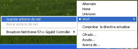 Haga clic con el botón derecho en el icono , pase el ratón por la ubicación actual para visualizar el submenú y, a continuación, haga clic en "Guardar entorno de red" para guardar el entorno.