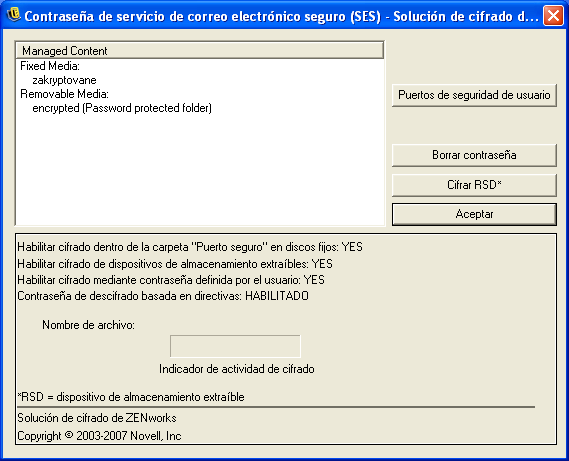 Cuando se activa mediante una directiva, Endpoint Security Client 3.5 gestiona el cifrado de los archivos ubicados en un directorio específico del puerto final y en dispositivos de almacenamiento extraíbles.