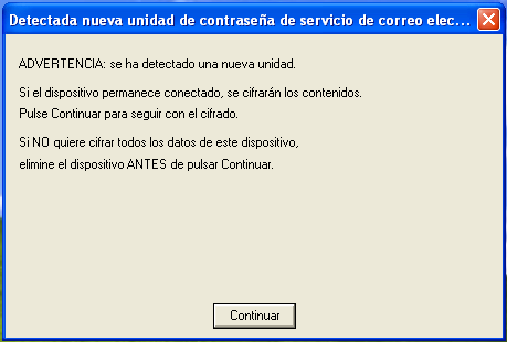 Figura 3-1 Advertencia de cifrado cuando se ha insertado una unidad nueva