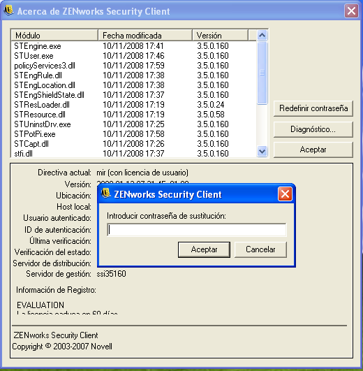 Escriba la clave de contraseña proporcionada por el administrador de ZENworks Endpoint Security.