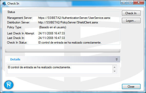 El botón Inicio de sesión le permite entrar en el Servicio de distribución de directivas. Para obtener información, consulte el Sección 2.2, Registro en Endpoint Security Client 4.0.