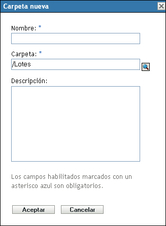 Nombre: indique un nombre exclusivo para la carpeta. Es un campo necesario.