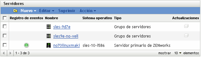 en la columna Actualizaciones indica si hay lotes de paquetes de actualización de Dell disponibles en el repositorio de paquetes de ZENworks para cada servidor Dell PowerEdge de la lista. Hay actualizaciones disponibles en las siguientes situaciones: