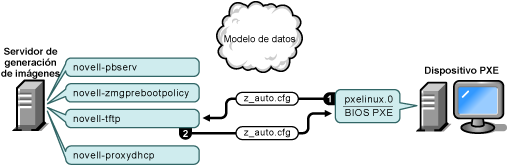 Después de que se haya descargado y ejecutado el programa de bootstrap de los servicios de prearranque, el dispositivo comprueba novell-zmgprebootpolicy para ver si hay trabajos de generación de imágenes que deba realizar.