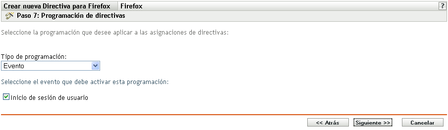 Haga clic en para acceder a la página Programación de directivas.