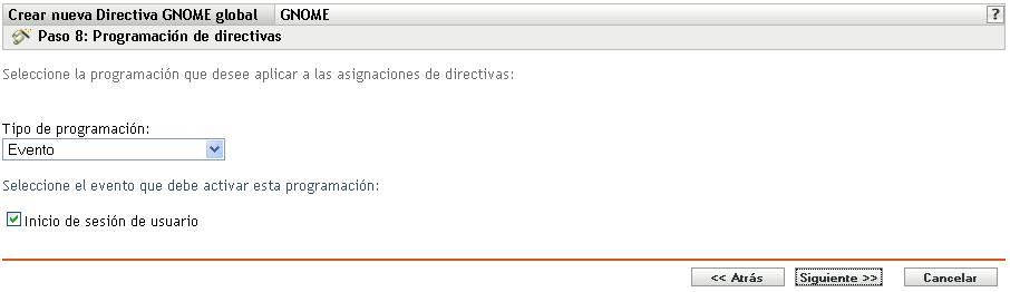 3. En la lista Tipo de directiva, haga clic en Directiva GNOME global y después en Siguiente para acceder a la página Nombre de directiva.