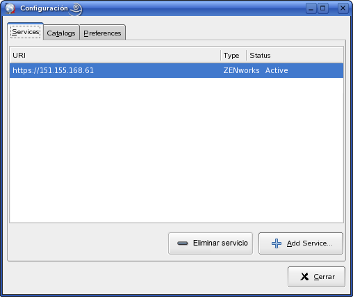 NOTA:el Actualizador de software y el Instalador de software usan las mismas configuraciones. Si añade un servicio usando la pantalla de configuración del Actualizador de software, dicho servicio aparecerá en la configuración del Instalador de software y viceversa.