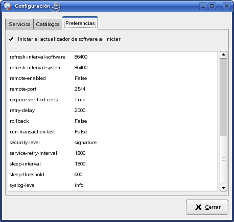 NOTA:se pueden editar las preferencias del sistema desde la línea de comandos utilizando rug set. Para obtener más información, consulte rug (1).