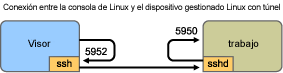 Figure I-1 Conexión entre la consola de Linux y el dispositivo gestionado Linux con túnel