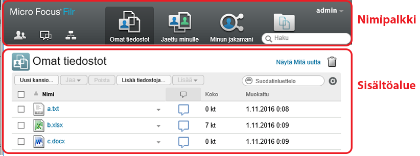 Näyttää Filr Käyttöoppaan.