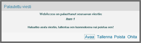 Kun käynnistät WebAccessin ja vain yksi automaattisesti tallennettu viesti palautetaan, näkyviin tulee seuraava sanoma: