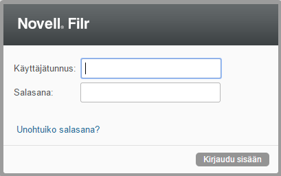 Ellet tiedä Filr-käyttäjätunnustasi ja -salasanaasi, ota yhteyttä Filr-järjestelmänvalvojaan.