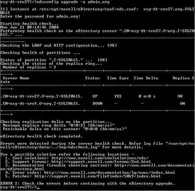 Si l'état de santé est vérifié dans le cadre de la mise à niveau, la mise à niveau est abandonnée. Pour plus d'informations, reportez-vous à l'Figure 9.