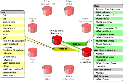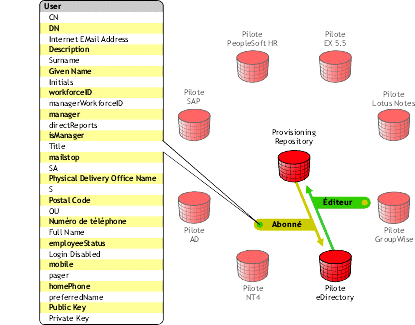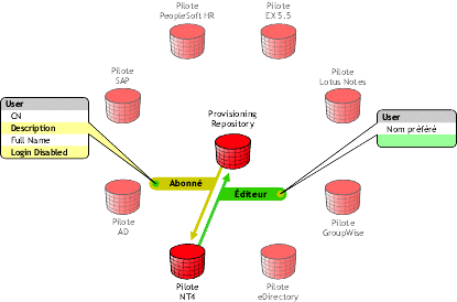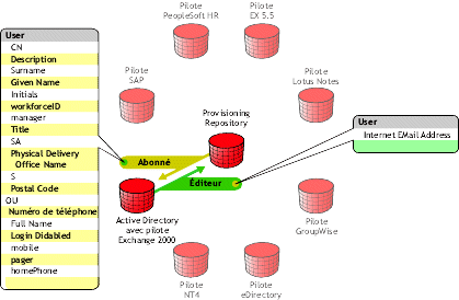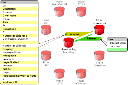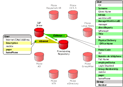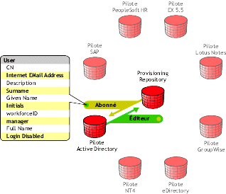Lors de la configuration de Novell Nsure Resources, vous sélectionnez des pilotes pour un système RH, un système de messagerie et un ou plusieurs systèmes de comptes. Une caractéristique fondamentale de cette solution est que le système RH constitue l'émetteur principal des données sur l'employé, de sorte que la plupart des informations partent de là pour passer dans l'arborescence Employés dans laquelle les données sont accessibles à d'autres systèmes. Bien entendu, il existe des cas dans lesquels les données ne proviennent pas du système RH, dont l'adresse électronique est un exemple flagrant. Cet attribut est en effet généré par le système de messagerie auquel il appartient, comme vous pouvez vous y attendre.