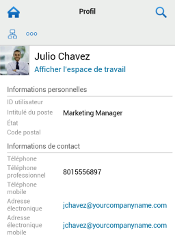 Vous pouvez afficher vos informations de profil complètes ou celles des autres utilisateurs.
