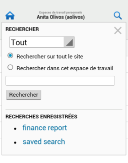 L'interface mobile ne permet pas de créer de recherche avancée, mais vous pouvez accéder à une recherche enregistrée comme indiqué à la section Utilisation d'une recherche enregistrée.