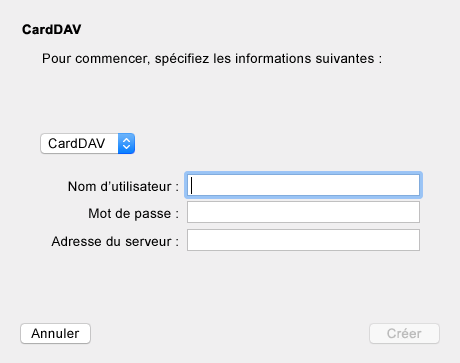 Avant de configurer l'application Contacts de Mac, assurez-vous de disposer de l'adresse IP ou du nom DNS du serveur d'agenda de GroupWise.