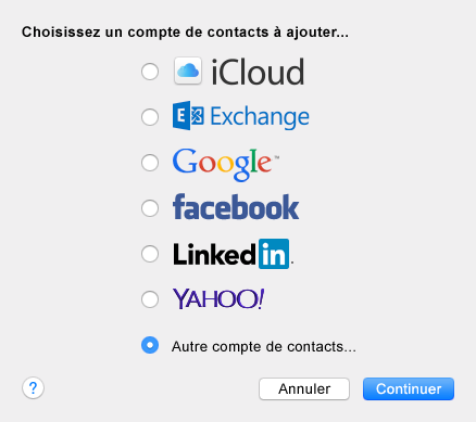 Dans l'application Contacts de Mac, sélectionnez Contacts > Ajouter un compte.
