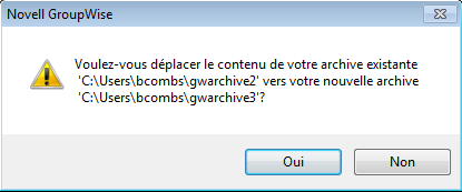 REMARQUE :Si vous déplacez l'archive dans un emplacement contenant déjà (ou ayant déjà contenu) une archive GroupWise, ne spécifiez pas un répertoire dans lequel se trouvent des fichiers d'archivage. Les fichiers d'archivage sont stockés dans le répertoire ofxxxarc, qui est automatiquement généré par GroupWise en tant que sous-répertoire du répertoire d'archivage.