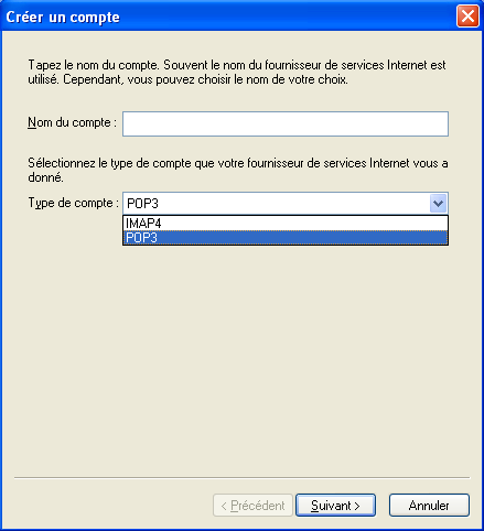 Saisissez le nom d'un compte, puis sélectionnez le type de compte de votre choix.